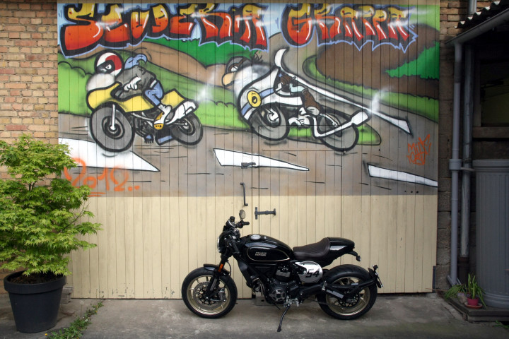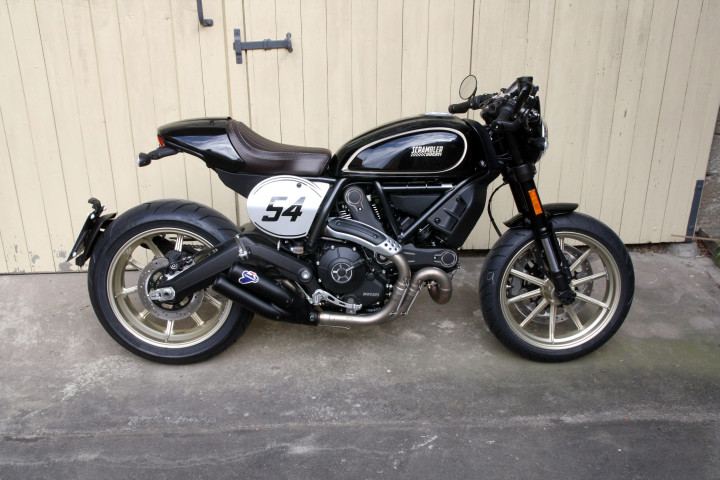 Es gibt wieder etwas Neues in meinem Fuhrpark. Ducati Scrambler Cafe Racer, Anfang März das erste Mal bewusst wahrgenommen, direkt Lieferzeiten bei diversen Ducati-Händlern angefragt, bei einem war noch eine verfügbar, Abends bestellt und dann hiess es warten, auf April oder sogar evtl. Mai. Mittwoch nach Ostern, kam der Anruf, Mopped ist da, aber die Papiere fehlen noch. Diese liessen sich noch knapp eine Woche Zeit. Abholen konnte ich sie dann endlich am 25.04.2017. Bisher nur 60KM gefahren und das zum größten Teil auf der Autobahn, deshalb noch kein aussagekräftiger Eindruck. Wetter ist ja zur Zeit noch recht bescheiden, aber am Sonntag geht es damit nach Koblenz-Güls zu den Italofreunden Münster-Maifeld.